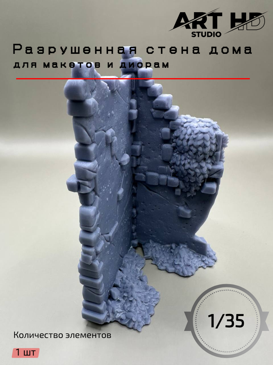 Разрушенная стена дома для миниатюр и макетов в масштабе 1:35 - это незаменимый аксессуар для любителей диорам и миниатюрных моделей. Разрушенная стена дома для макетов позволяет создать реалистичную атмосферу и погрузиться в мир миниатюрных сражений.